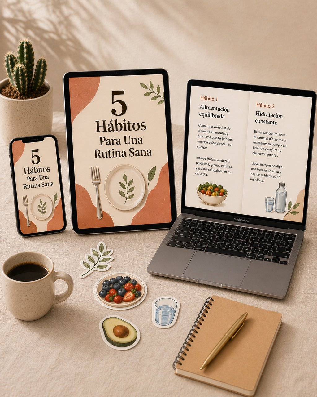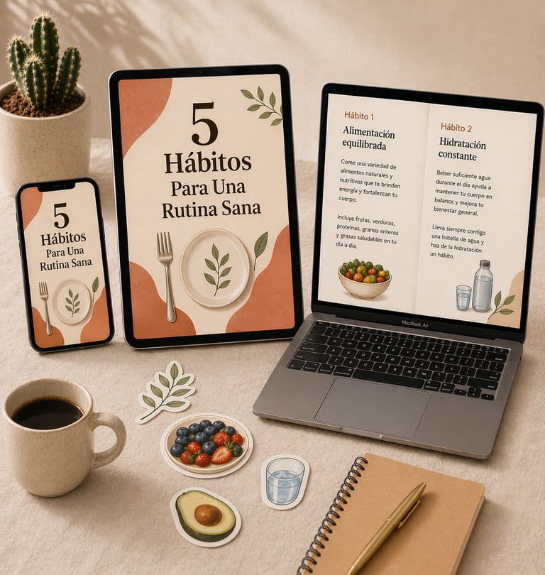 Rutina Sana es un sistema práctico con más de 50 acciones diseñadas para ayudarte a construir hábitos saludables en 7 días, junto con 3 bonos exclusivos que te guían paso a paso, eliminan la confusión y te muestran exactamente qué hacer para sentirte mejor desde el primer dia.